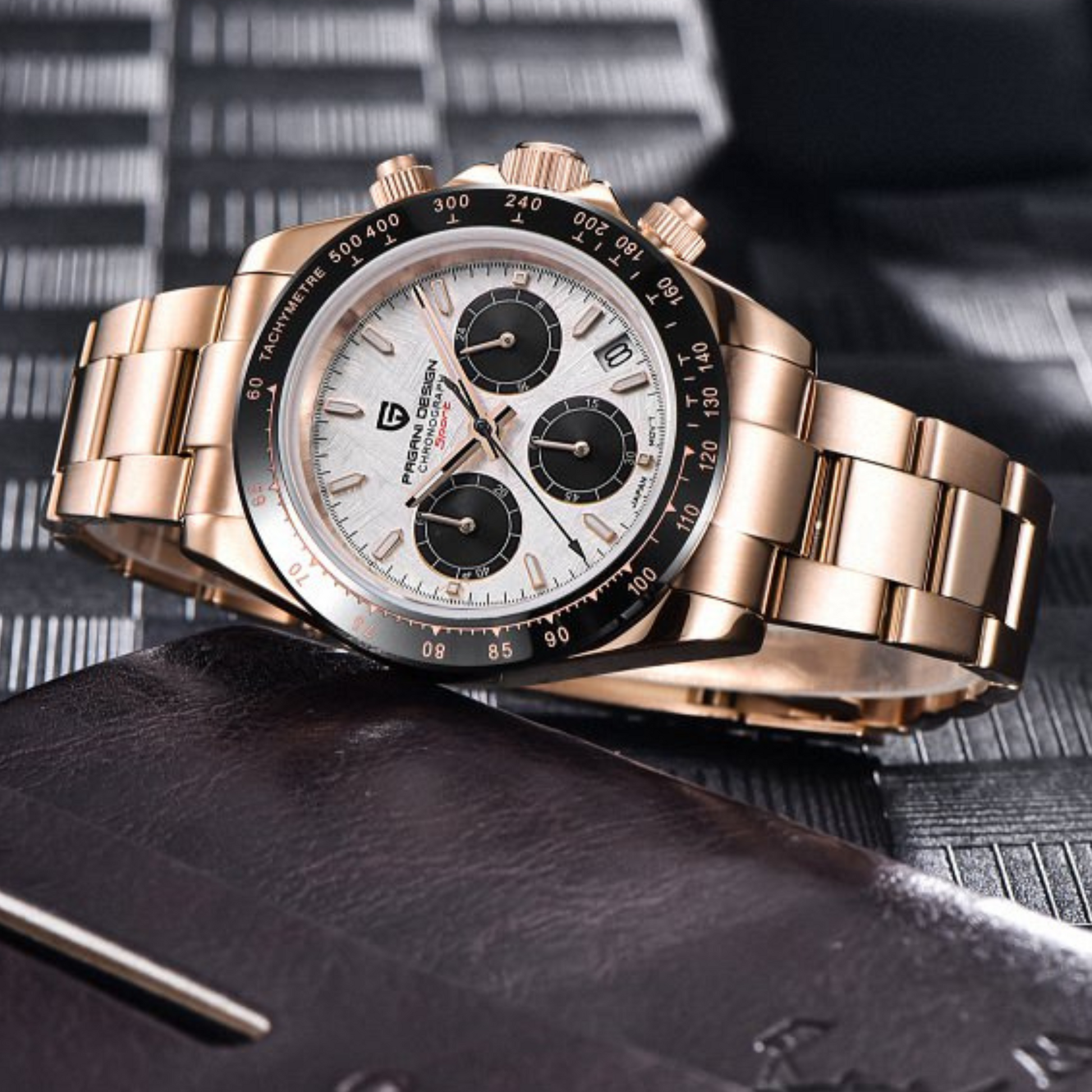 Pagani Design PD-1644 | Luxury | Meca-quartz Movement (SeikoVK63) | Stainless Steel Men's 40MM Watch (Daytona) - Rosè Gold