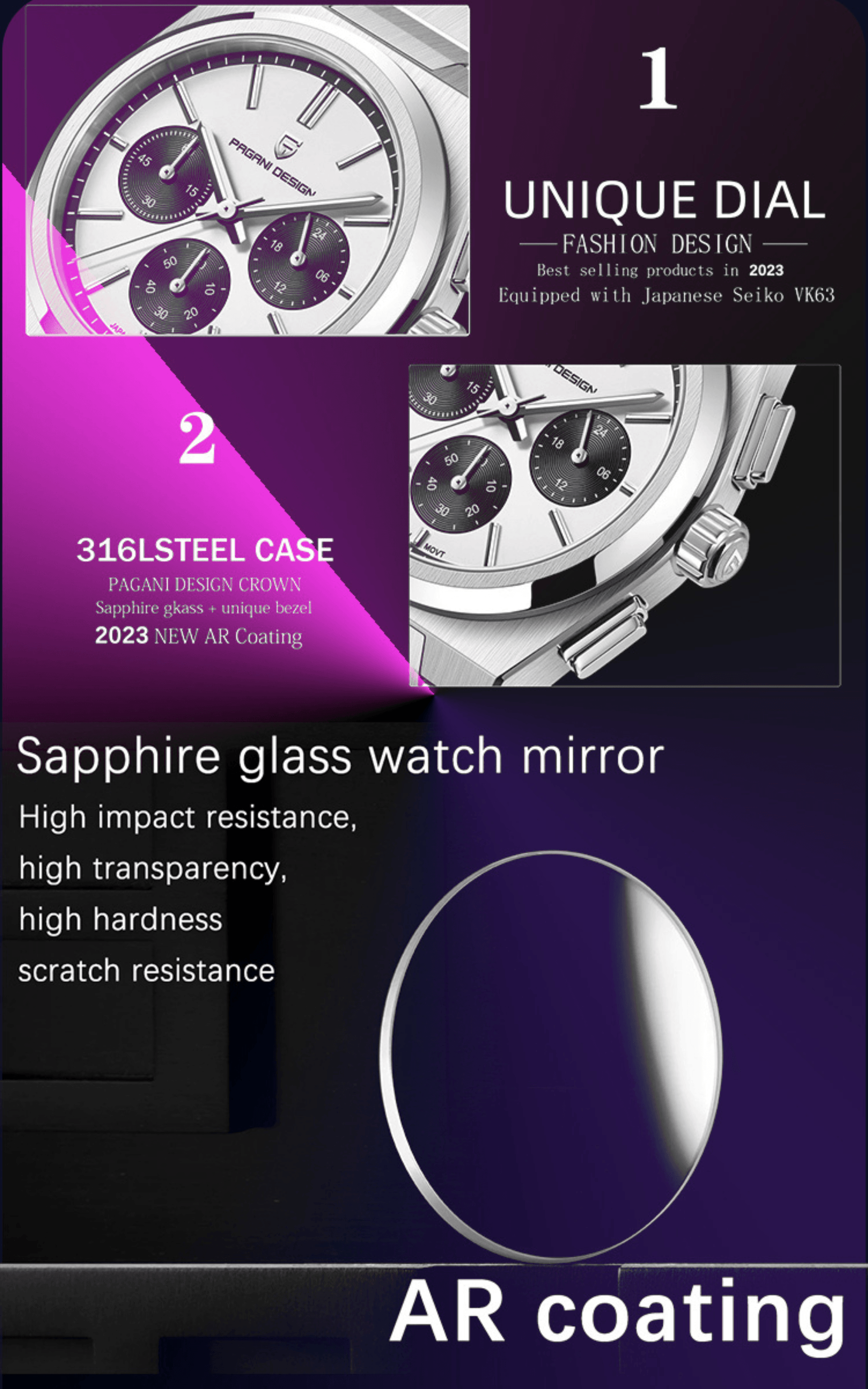 5.100% money back guarantee: using our PAGANI DESIGN watch is 100% risk-free. One year warranty, 24-hour online customer service, any problems in use, please contact us.