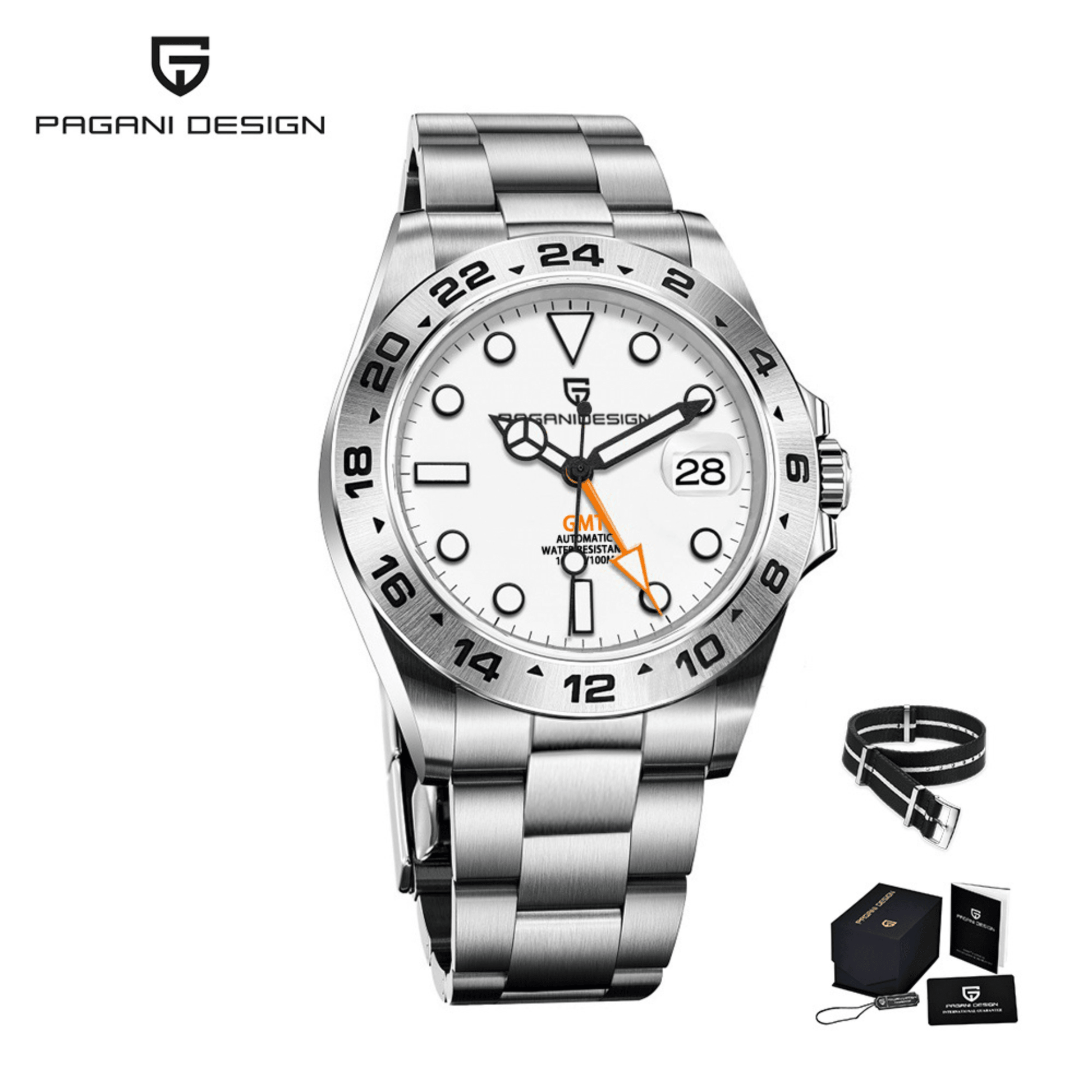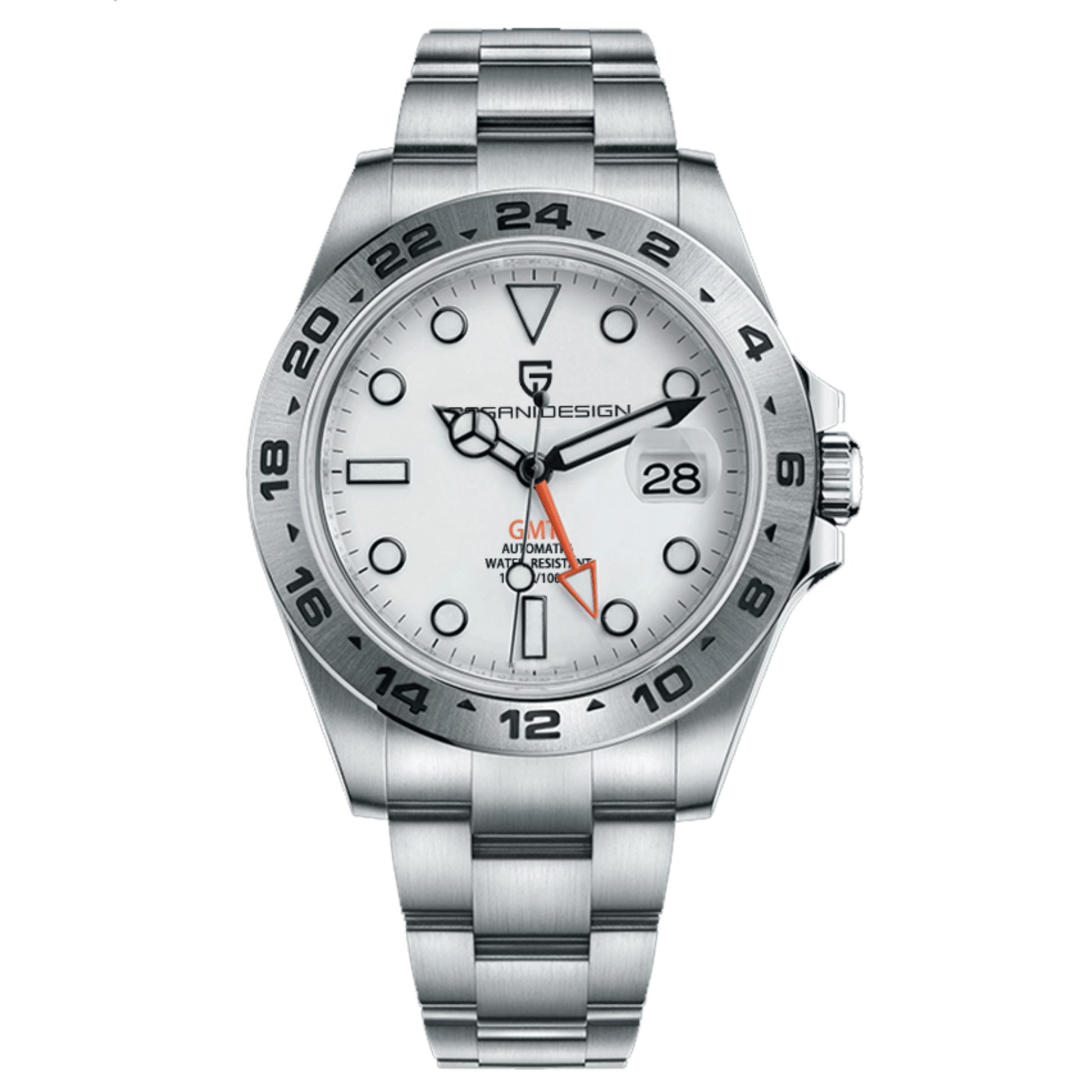 Pagani Design PD-1762 Seiko NH34 Movement equipped with AR AF Anti-Radiation Coating Automatic Watch Stainless Steel Men's (GMT Explorer II - White)